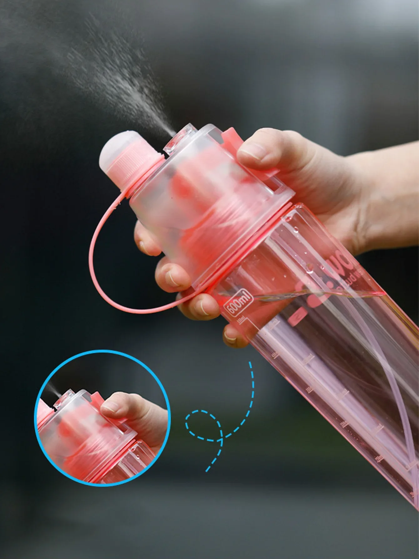600ML Sports Water Bottle Drinking Spray Fog Water Bottle Male and Female Plastic Water Bottle for Cycling Hiking Outdoor Gym
