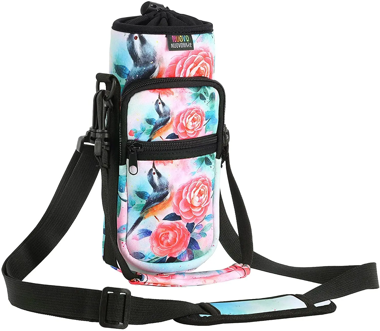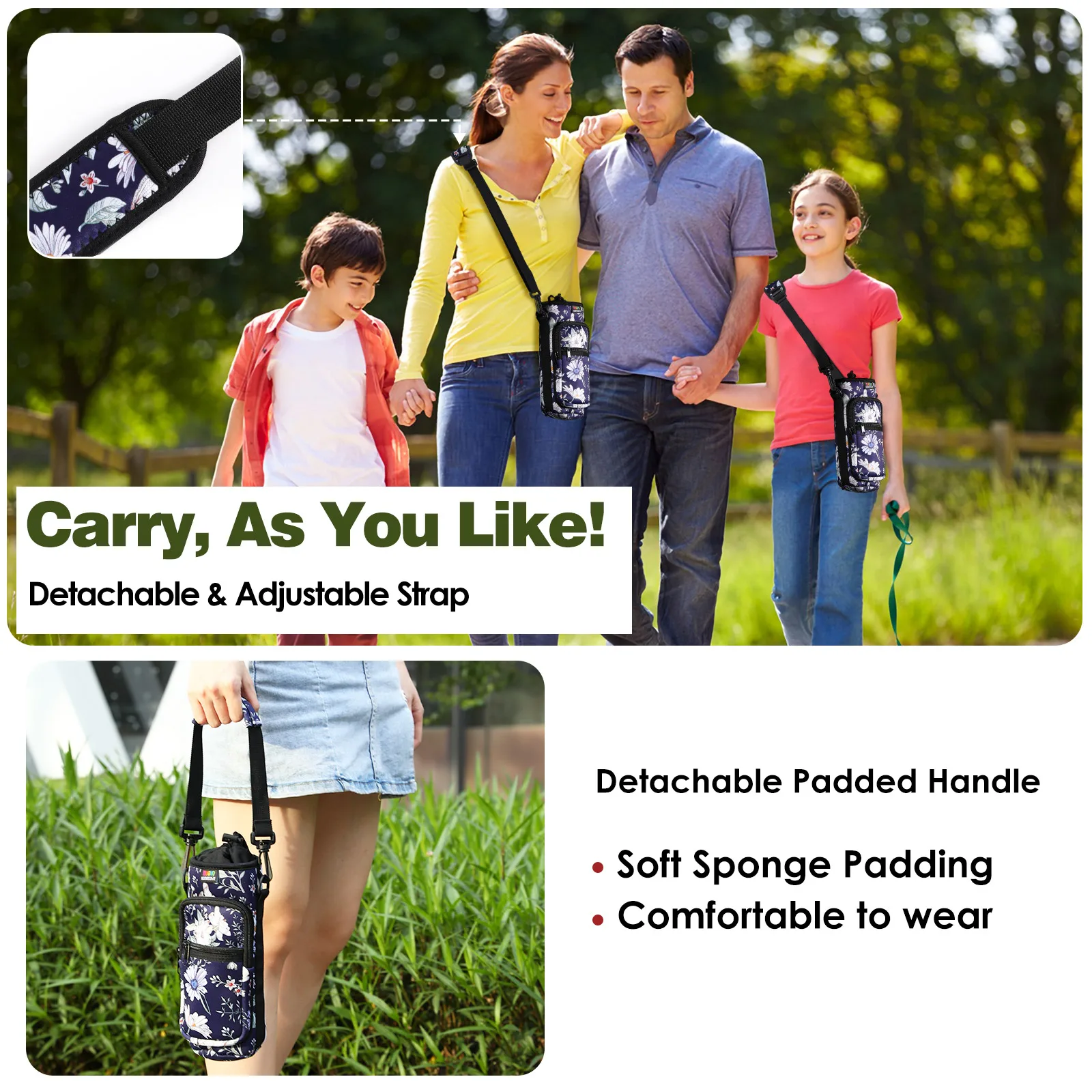 PREMIUM MATERIAL: Made of neoprene material, our bottle carrier bag has better water resistance, shockproof while maintaining its high softness and elasticity. Neoprene material makes it more sturdy and not easy to deform in long time use.WIDELY USED: This water bottle carrier bag it's the perfect for commute, jogging, hiking, cycling, camping, travel, or even if you're at the beach, at the gym, or at sports events.
